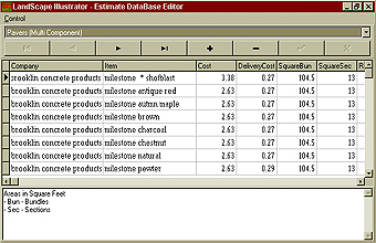 Gives you the ability to add, edit and delete complete database items. The program comes pre-loaded with a comprehensive Plant Library, Paver Vendors, Natural Stone Vendors with"Trade Pricing" for all.