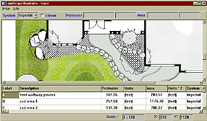 You simply trace any areas for which you require the area ond or perimeter value (e.g. sod areas, pavers, flagstone and planting areas). These values can be "dragged and dropped" into specific vendor records in the Estimate Component to work towards the installed cost.